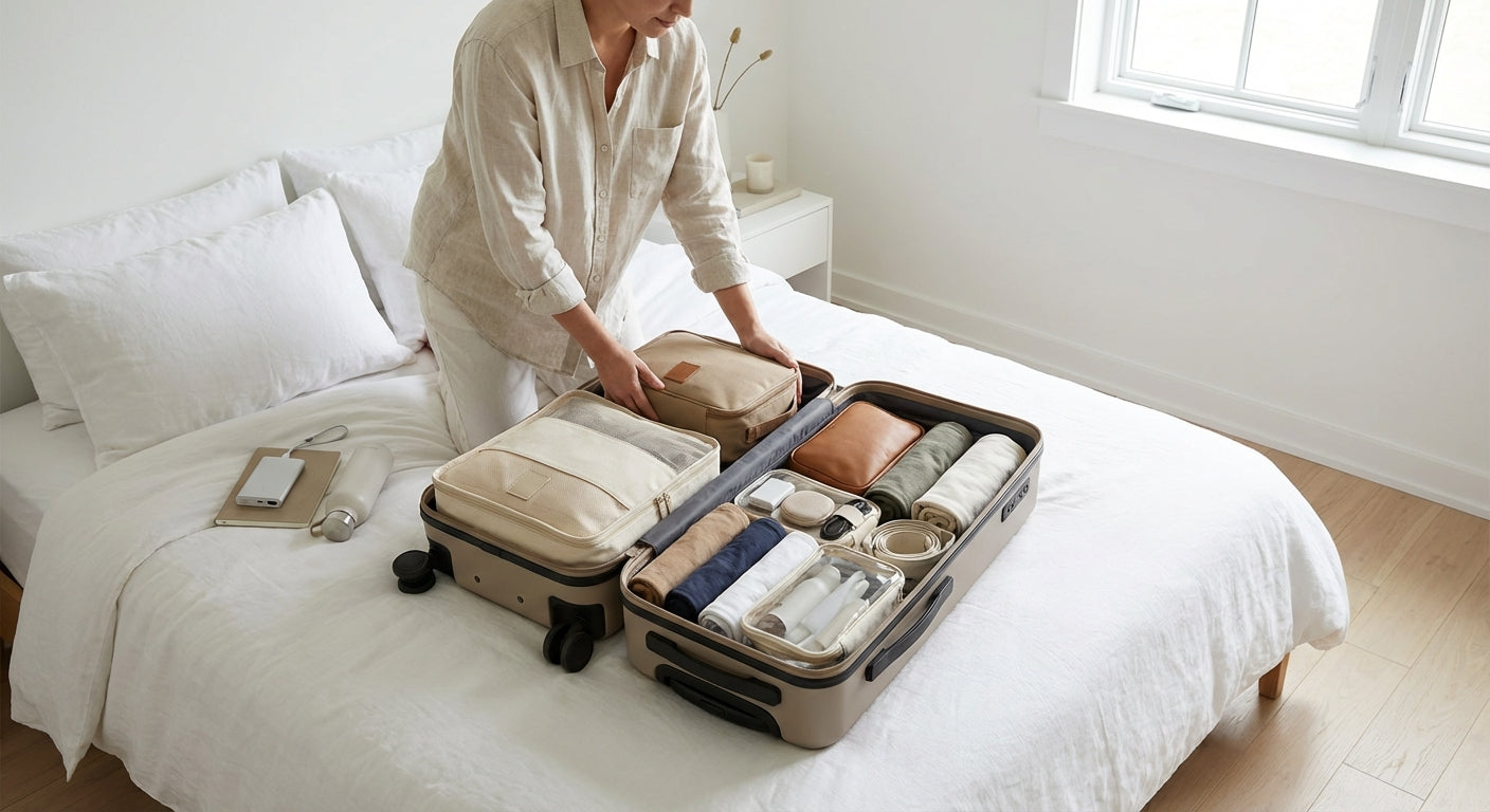 Move with ease using thoughtfully designed travel essentials made for comfort and organisation on the go. Practical, compact, and refined.